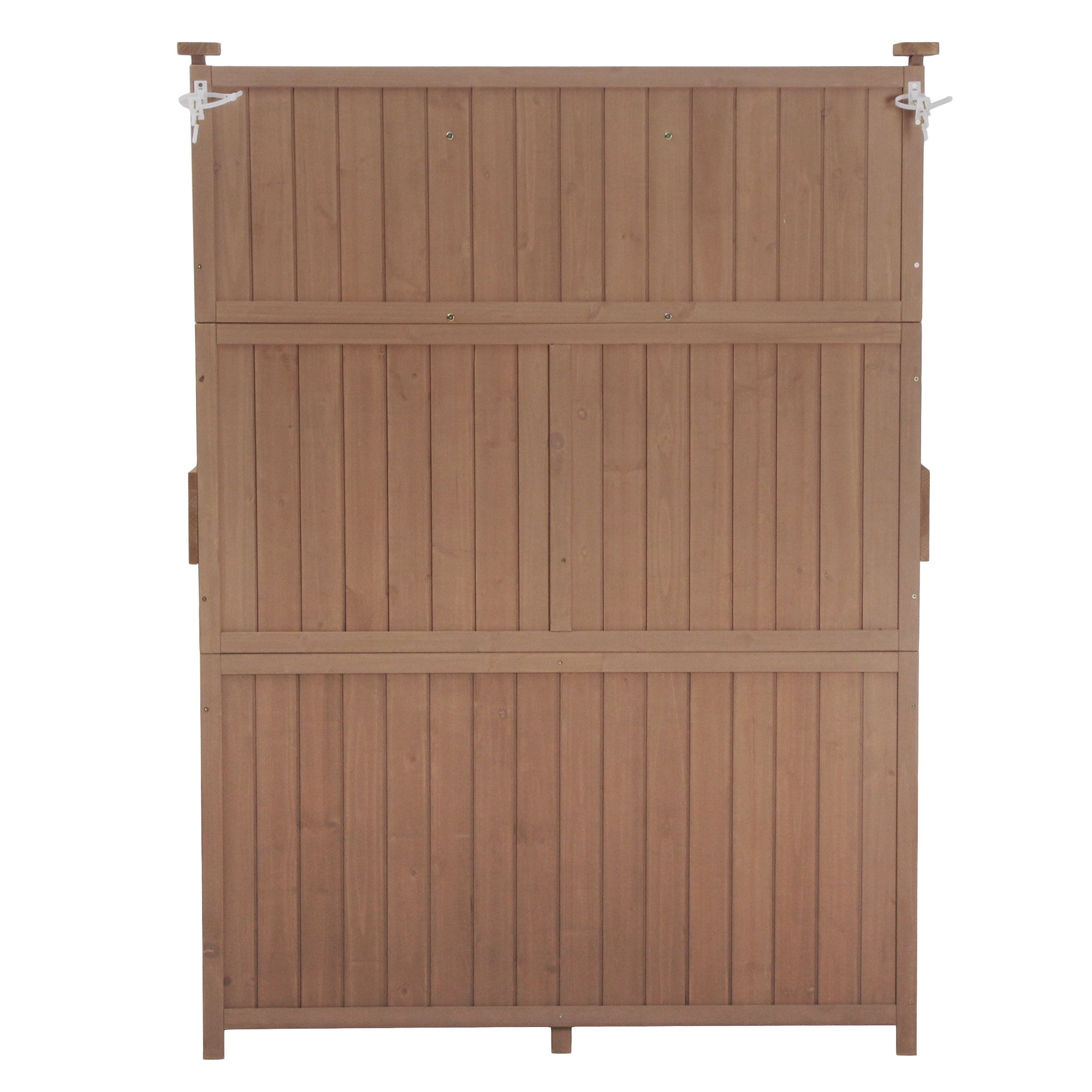 Rustic and mighty, this Fir Potting Bench Workstation with Drawers and Cabinet measures 47 x 65” and is perfect for the dedicated gardener. Constructed of solid fir wood which is rot and weather resistant, it has a stained finish to increase its durability and long life. Furthermore, the hutch features triangular support bars on either side to provide greater stability and weight capacity to the upper shelves. For safety, two anti-falling devices are included to affix the unit to a solid wall or fence. The workbench height is 34” off the ground which will allow you to tend your potted plants and flowers in comfort while you tend them. There are two large pull out drawers to store your hand tools and miscellaneous supplies and a two shelf storage cabinet with magnetic latching doors to protect the contents for stormy weather. While made specifically for a gardening workstation, it would be perfect in a mudroom or garage or anywhere you neet a work surface with plenty of storage.